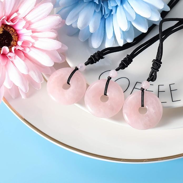 Jovivi 30mm Circle Donut Healing Crystals Necklace Natural Semi-Precious Chakra Gemstone Stone Amulet Lucky Coin Donuts Charm Protection Quartz Reiki Pendant Necklace for Men Women Adjustable Rope