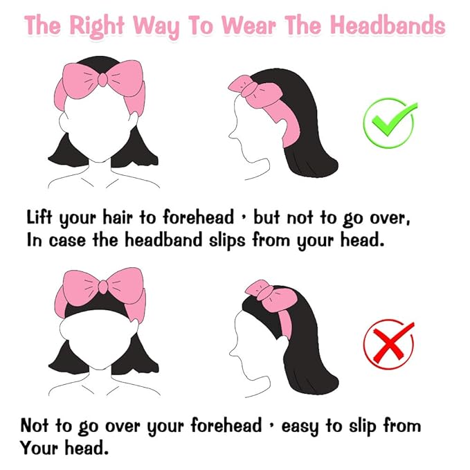 - USE FOR DAILY: Adorable make up headband, wash headband, friendly to skin, best way to keep your hair dry and out of way for cleaning or doing a mask. Just lift your hair to forehead but not to go over, in case the hair band slips from your head