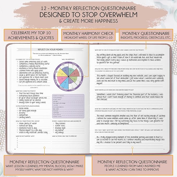 - INCREASE PRODUCTIVITY AND HAPPINESS - This is a deluxe life goal planner showing you how to become the best possible version of yourself on a mental, physical & interpersonal level using the law of attraction vibration guide. The life planner is a daily, monthly, weekly planner, productivity, goal planner, business planner, to do list planner, planner notebook & gratitude journal all-in-one.