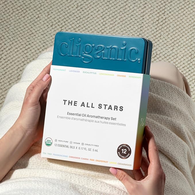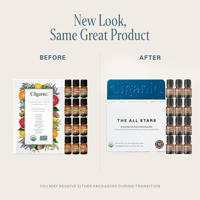 Cliganic Organic Aromatherapy TOP 12 Essential Oils Set, 100% Pure - Peppermint, Lavender, Eucalyptus, Tea Tree, Lemongrass, Rosemary, Frankincense, Orange, Lemon, Cassia, Cedarwood & Grapefruit
