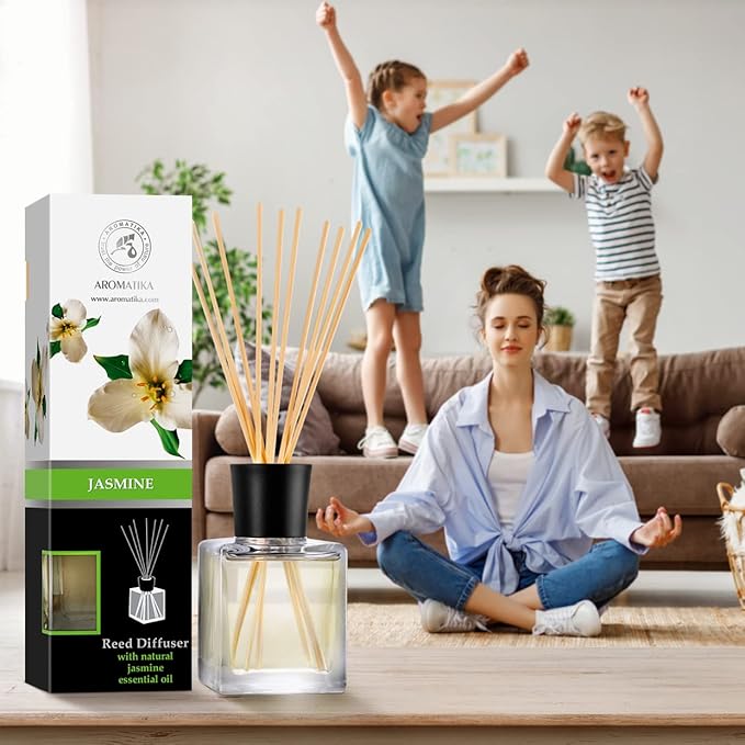 - JASMINE REED DIFFUSER has sweet, romantic fragrance that is hard to mistake. It promotes atmosphere of comfort and tranquility. Jasmine aroma increases activity, invigorates and fills with energy