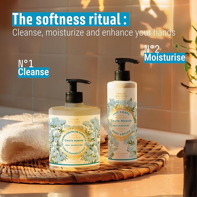 Panier des Sens β Sea Samphire Hand & Body Lotion for Dry Skin - Hydrating Body Cream for Women - Nourishing Fluid Body Moisturizer Shea Butter & Olive Oil 97% Natural Ingredients Body Care 8.45 Floz