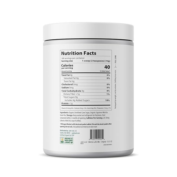 Jade Leaf Matcha Organic Cafe Style Sweetened Matcha Latte Green Tea Powder, Premium Barista Crafted Mix - Authentically Japanese, 100 Servings (2.2 Pound Bulk Tub)