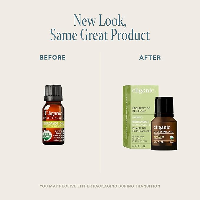 Cliganic Organic Bergamot Essential Oil, 100% Pure Natural for Aromatherapy | Non-GMO Verified (Packaging May Vary)
