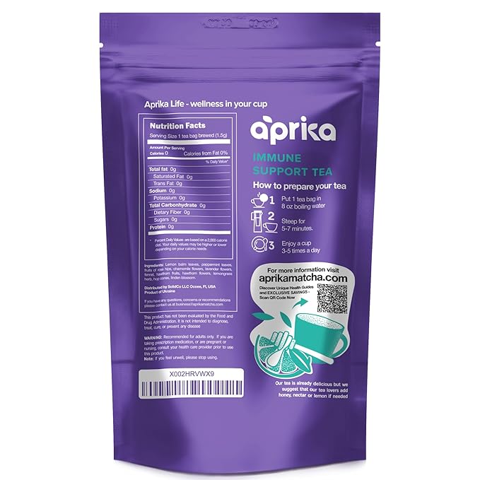 Immunity Booster Decaffeinated Tea Bags, Pure Herbal Immunity Blend - Lemon Balm, Peppermint, Chamomile, Lavender. Immune Support Supplement - 60 Bags by Aprika Life