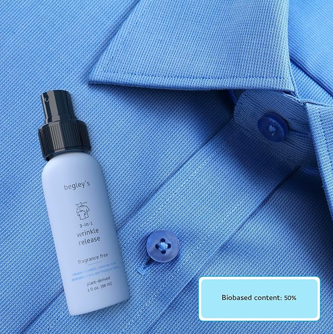- USDA Certified Biobased - The biobased solvent is a fast and effective alternative to hand ironing. Removes wrinkles from freshly laundered clothes. Reduces static cling and puts the sleek back into wrinkled fabrics, leaving them looking good and smelling great. Indispensable for travelers living out of suitcases and students in dorms