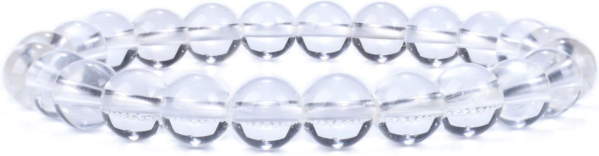 - CONTAINS: A clear quartz bracelet made with 8mm semi-precious beads packaged inside a protective cloth drawstring pouch. Quartz is a mineral containing silicon and oxygen and is one of the most abundant minerals on the earth. Quartz is one of the secondary birthstones for the month of April.