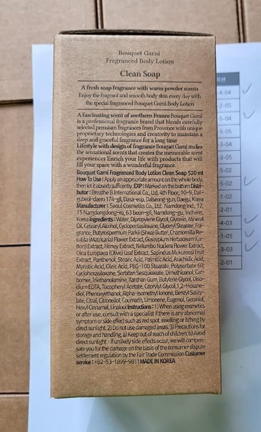 Bouquet Garni Body Lotion Clean Soap Fragrance - Long-lasting Moisture & Fragrance, Non Sticky Texture (Containing Shea Butter Rich in Vitamin A, C, E) - 17.6 oz