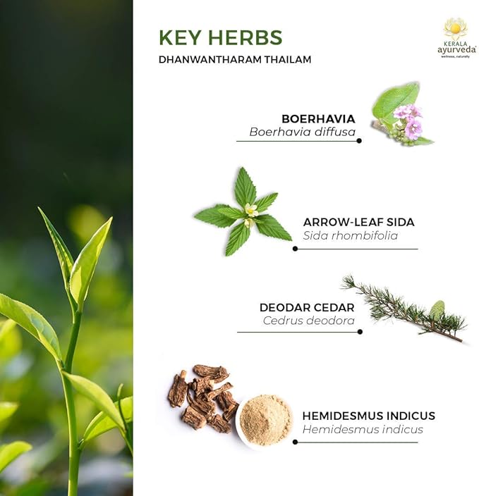 Kerala Ayurveda Dhanwantharam Thailam Ayurvedic Massage Oil (6.76 Fl Oz) | Herbal Body Oil for Daily Self-Massage | Supports Joint & Muscle Comfort | Moisturizing Adaptogen Oil for Body & Skin Care