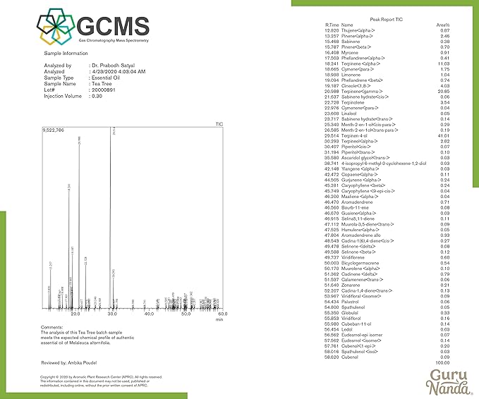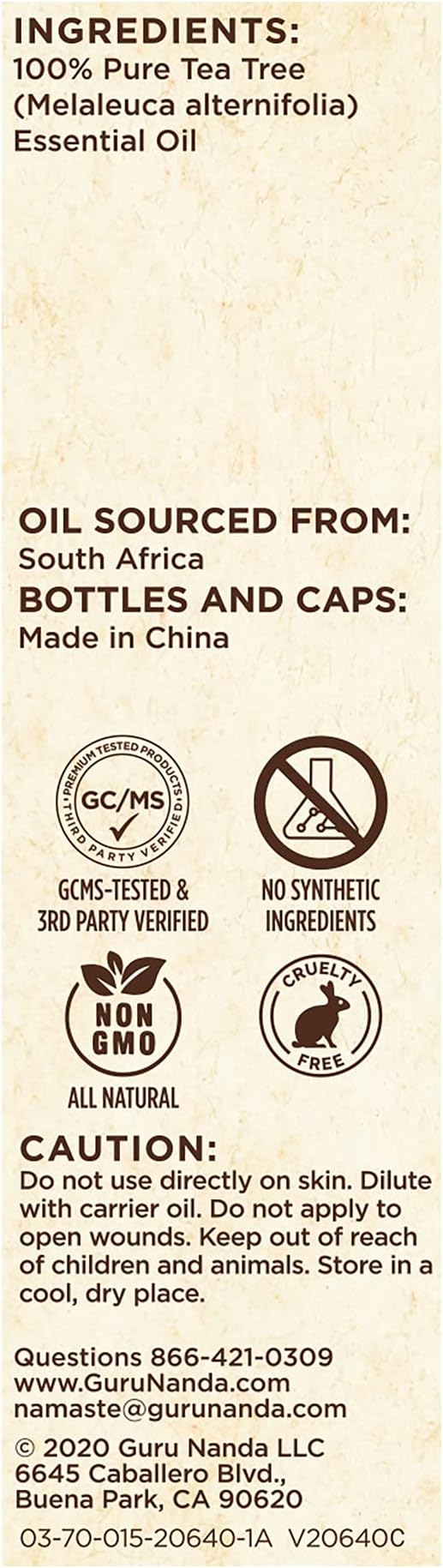 - GuruNanda's Tea Tree essential oil is 100% pure & natural. Sourced directly from South Africa & Australia, it is packaged in the USA and boasts an enchanting aroma with no added artificial fragrances.