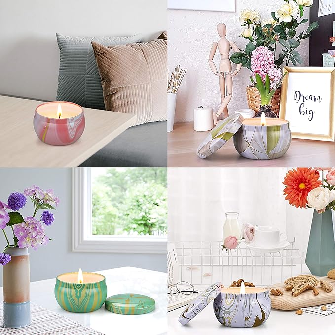 - š[Safe & Natural Soy Candles]: Different from those unhealthy paraffin wax candles, our soy candles made of 100% natural soy wax, burns clean and evenly. The lead-free wick cotton will not produce black smoke and is harmless to the environment and humans.