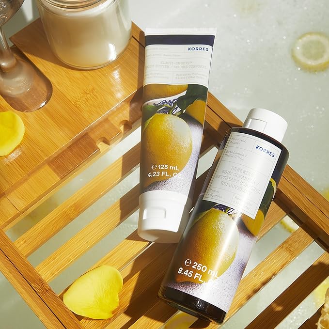 KORRES Elasti-Smooth Basil Lemon Body Butter With Shea Butter, Squalane And Greek Safflower Oil For Velvety Skin Texture, Fast Absorbing Whipped Moisturizer With Herbal Citrus Scent, 4.23 Fl Oz