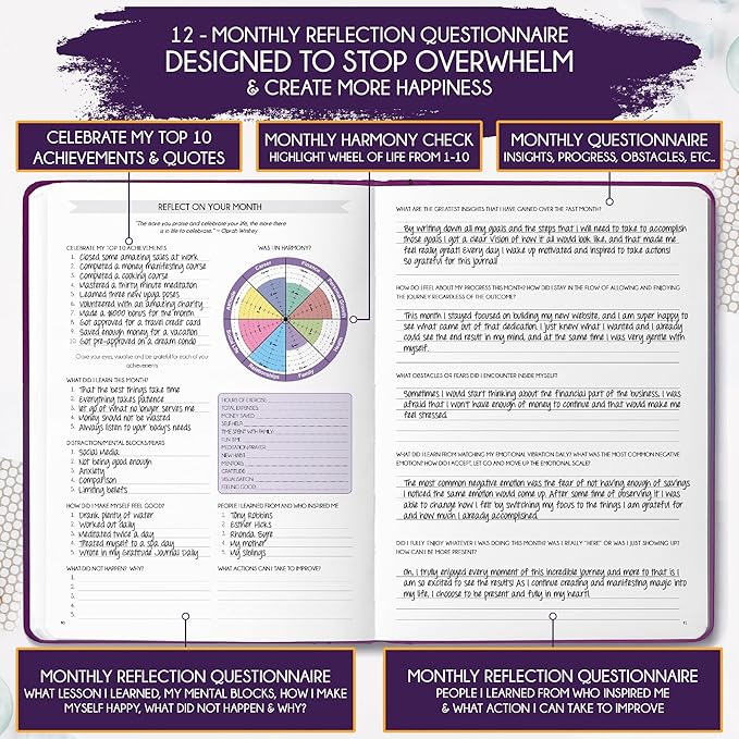 - REDUCE OVERWHELM, STRESS AND FIX PROCRASTINATION - Follow a unique 8 step system that will help you bring back harmony, clarity, and peace in your life while achieving your goals. This planner is perfect for birthday gift, mother's day, anniversary gifts, and christmas gifts.