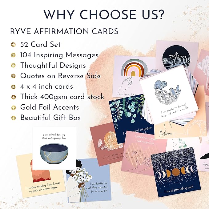 RYVE 52 Positive Affirmation Cards for Women – Mindfulness Prompts with Inspirational Quotes for Daily Motivation & Meditation – Inspirational and Daily Affirmations Cards, Inspirational Gifts