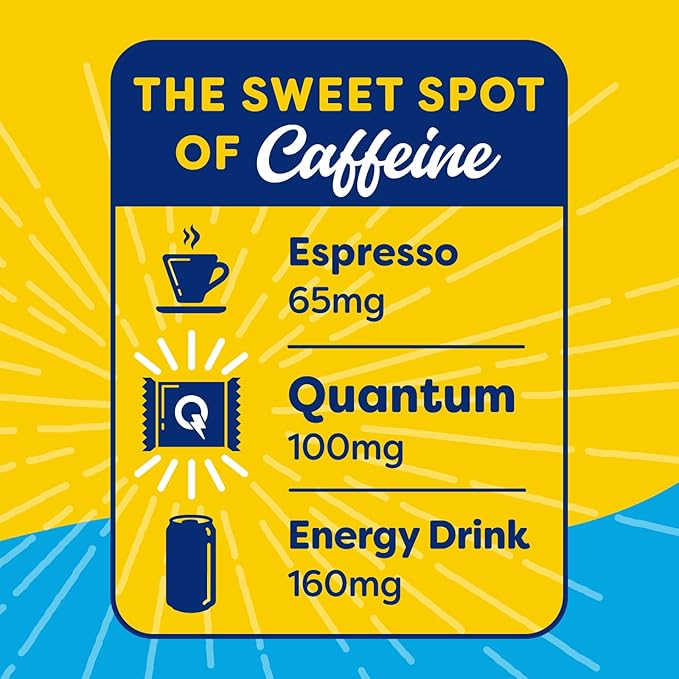 - CAFFEINE x PROTEIN: Quantum delivers the lift of an energy drink plus the clean nutrition of a healthy snack in one tasty square.