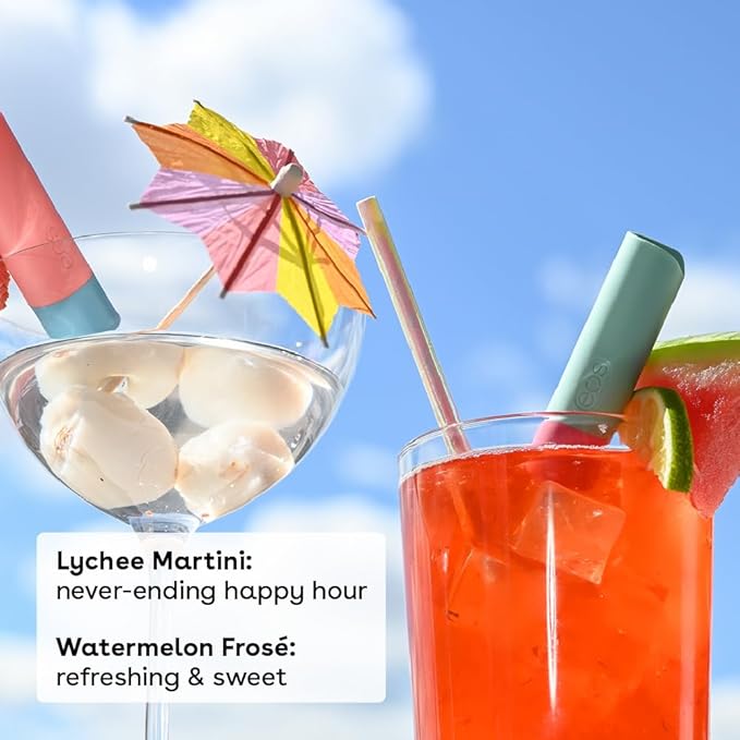 eos 100% Natural Lip Balm Sticks - Watermelon Frosé and Lychee Martini, All-Day Moisture, Dermatologist Recommended, All Natural Lip Balm, 0.14 oz, 2-Pack