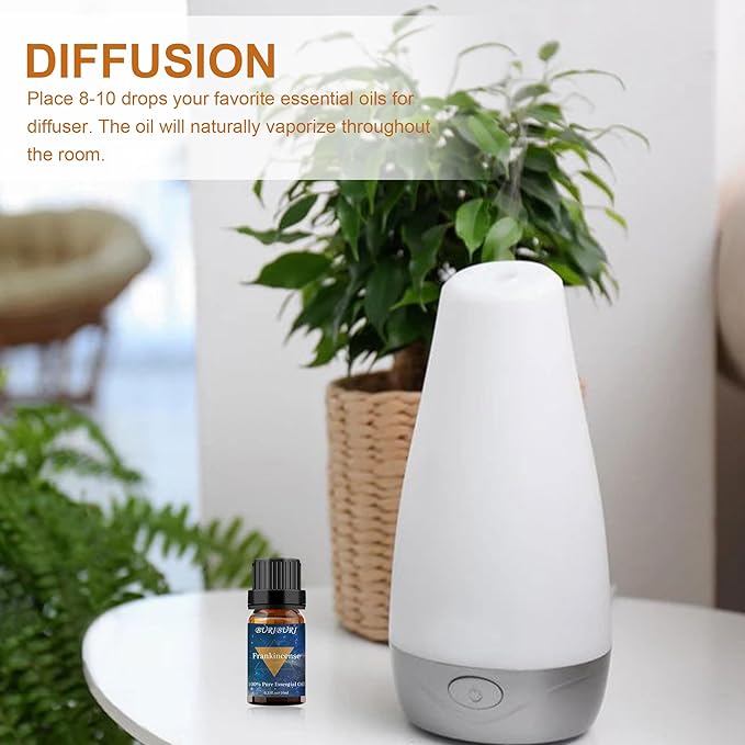 - Packing Includes: 10ml Frankicnense Essential Oil x1. With no adulterants or dilution, 100% pure quality. BURIBURI frankicnense oil is bottled in a durable amber glass bottle.