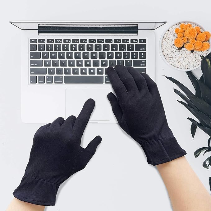 Evridwear 100% Cotton Touchscreen Moisturizing Beauty Gloves with Elastic Cuff, Natural Cosmetic Therapy Gloves for Eczema SPA Dry Hands Care Overnight (Black, Small) 5 Pairs