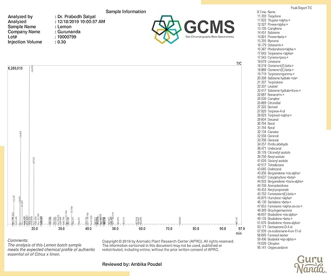 - Made from a cold compression of lemon fruit peels, the essential oil is pure, natural, and undiluted for most original benefits. The essential oil is GCMS-certified and does not contain fillers and additives in the solution.