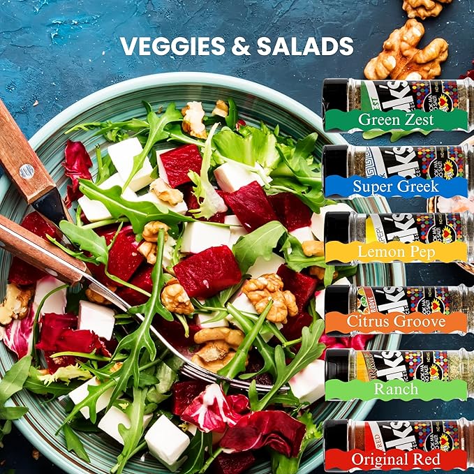 - 100% SALT FREE & SUGAR FREE - DAK's Spices is a full line of innovative NO SALT Spice Blends. High in quality, high in flavor, low in sodium. Cut back on salt intake and enjoy a kick of bold flavor without compromising health. Our line of salt free seasonings left out the salt, but kept all the flavor. Make Every Pizza, Bagel or Wrap tastier with Just a Pinch.