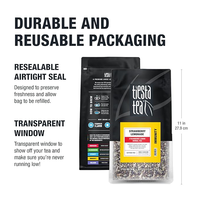Tiesta Tea - Strawberry Lemonade, Loose Leaf, Strawberry Lemon Herbal Tea, Premium Non-Caffeinated Fruit Blend, Make Hot or Iced & Brews Up to 200 Cups, 16 Ounce Resealable Bulk Pouch