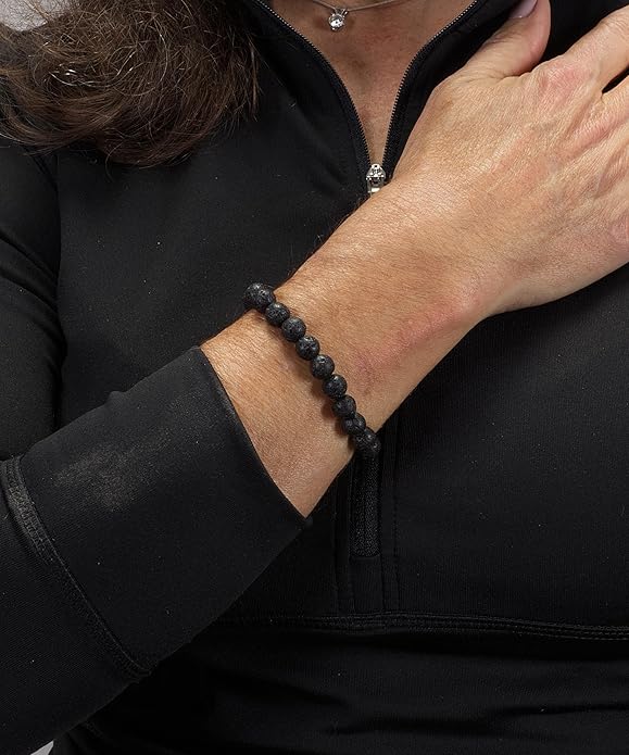 - CONTAINS: A lava bracelet made with 8mm semi-precious beads packaged inside a protective cloth drawstring pouch. Lava, also called basalt, is formed when volcanos erupt and the lava cools. In its natural form it is found in black and red colors. It is a very porous stone and is often used with essential oils.