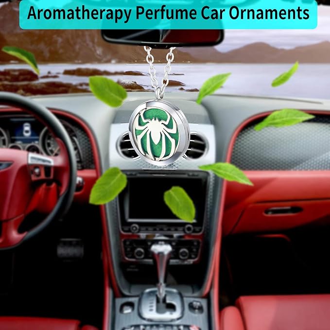 Essential Oil Diffuser Necklace - Aromatherapy Stainless Steel Spider Pattern Locket Pendant Jewelry Set for Birthday Christmas Halloween Women Men Teen