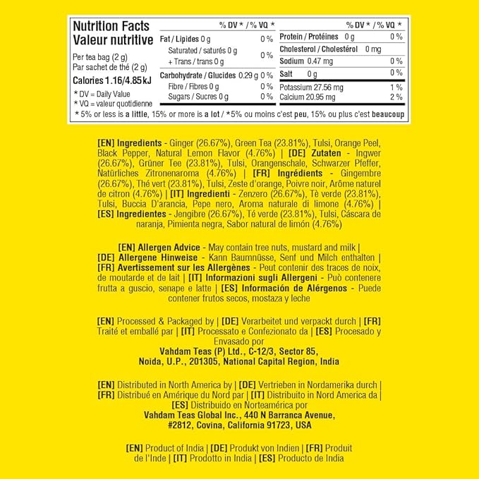 VAHDAM, Lemon Ginger Tea Bags (100 Green Tea Bags) Low Caffeine | Fruity Flavor - Zesty Lemon & Ginger, Orange Peel | Resealable Ziplock Pouch | Brew Hot or Iced Tea
