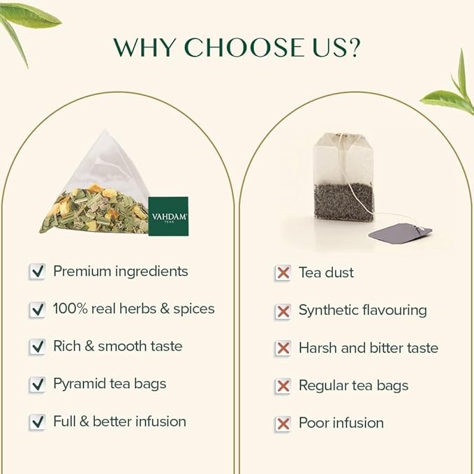 - Full-Flavor Tea Bags - High-quality tea leaves in plant-based biodegradable tea bags with its pyramid shape, the tea leaves are able to unfurl fully, releasing rich flavors for an aromatic tea experience.