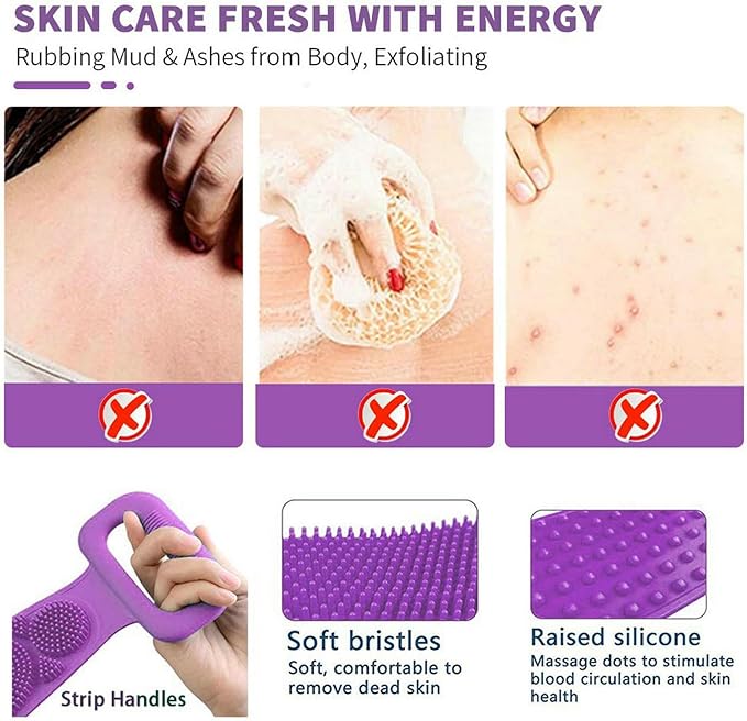 - EASY TO USE - The silicon back scrubber come with Two Handles for You Easily Grip the Scrubber and Easily Hang for Quickly Dry. You can put on body wash on it and move it across the back in both directions easily and effectively.