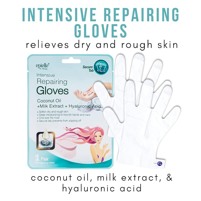 - š Intensive Repairing Gloves with coconut oil, milk extract, and hyaluronic acid that nourishes dry and cracked hands