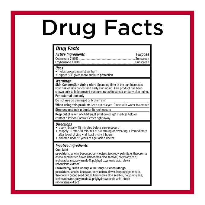 - Water resistant for up to 80 minutes, each tube of this flavored lip balm with sunscreen helps keep your lips protected while you swim or stay active outdoors