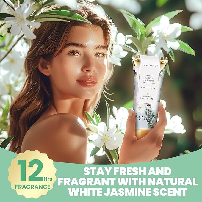 Spa luxetique Bath and Body Gifts for Women 8pcs Jasmine Scented Spa Sets with Bubble Bath Gift Baskets for Women Mother's Day Gifts for Mom