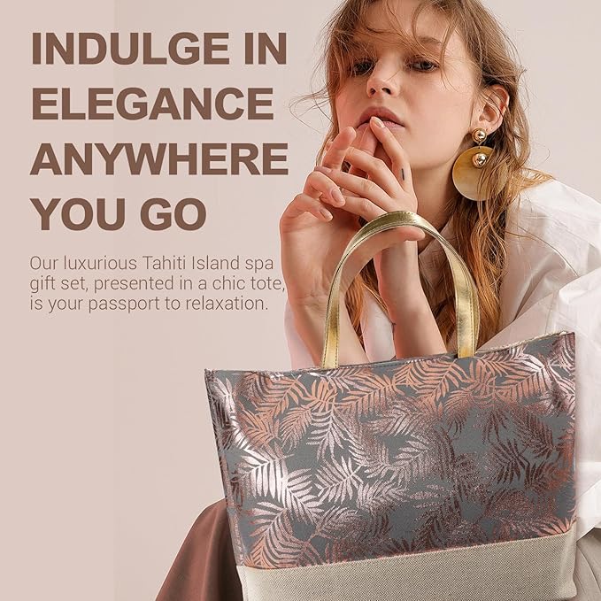 Spa Gifts Basket for Women, Spa Luxetique Tahiti Island Bath Gift Set, 15pcs Luxury Self Care Kit with Bath Bombs, Essential Oil, Hand Cream, Bath Salt, Tote Bag, Birthday Day Gifts