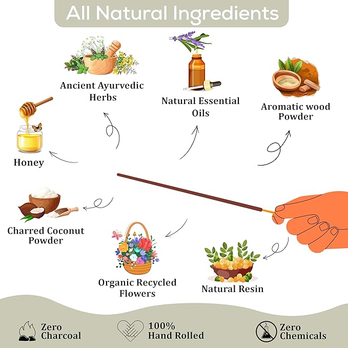 - Guarantee 100% natural incense sticks chemical free organic, pure herbal ingredients without any chemical fragrance. You can free return for any reason.