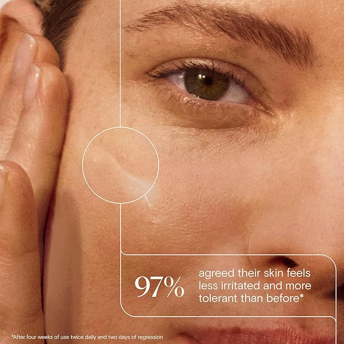 - The lightweight, fast-absorbing formula contains prebiotic oat and feverfew, which effectively helps calm irritated, dry skin. 97% noted skin feels less irritated, more tolerant and comfortable all day
