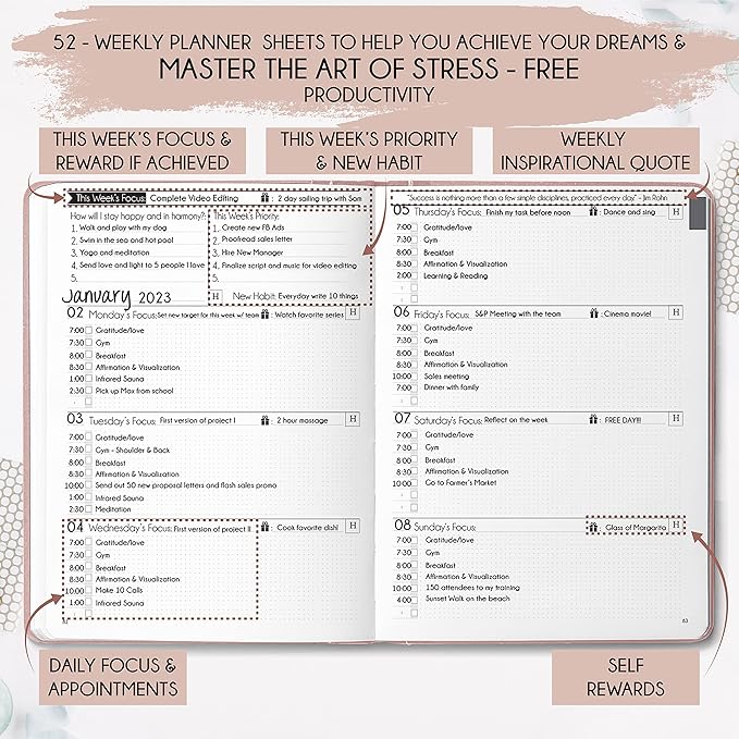 - REDUCE OVERWHELM, STRESS AND FIX PROCRASTINATION - Follow a unique 8 step system that will help you bring back harmony, clarity, and peace in your life while achieving your goals. This planner is perfect birthday gifts for men and women, anniversary gift for couple and lastly gifts for friends