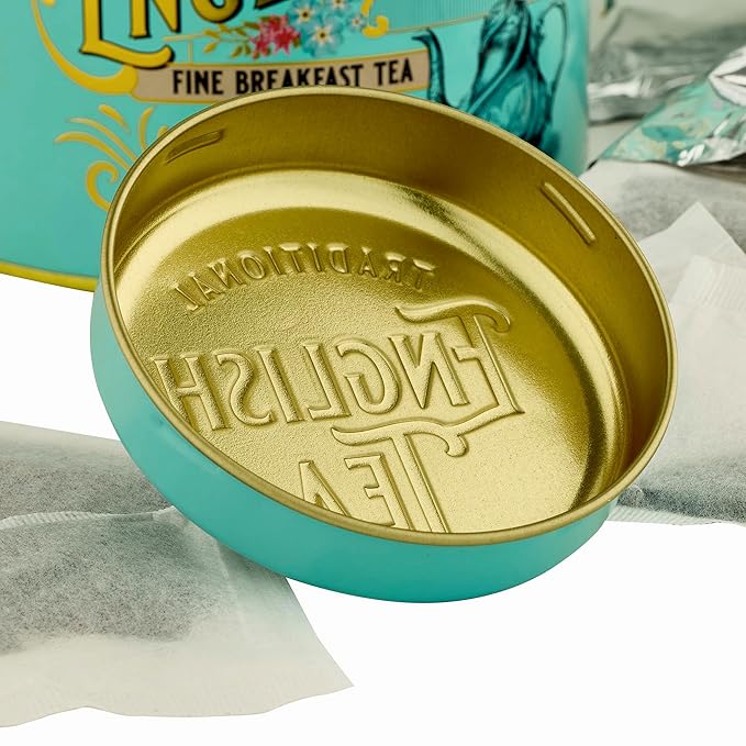 New English Teas Vintage Victorian Tea Caddy with 80 English Teabags (Teal), Forget My Not Gift