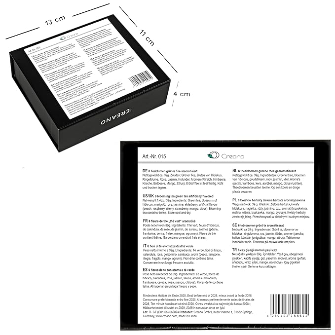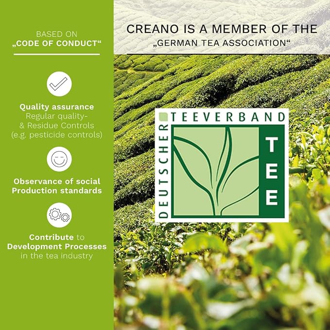 - QUALITY: Creano Blooming tea are a branded product of the very best quality. We attach great importance to the quality of the tea, blossoms as well as the function and appearance. As a member of the German Tea Association, we stand for the greatest possible product safety and are subject to the "Code of Conduct".