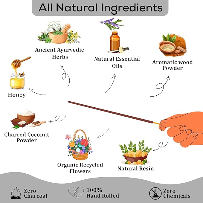 - Guarantee 100% natural incense sticks chemical free organic, pure herbal ingredients without any chemical fragrance. You can free return for any reason.