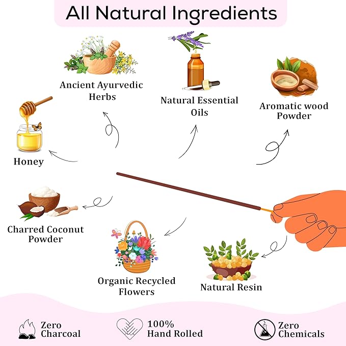 - Guarantee 100% natural incense sticks chemical free organic, pure herbal ingredients without any chemical fragrance. You can free return for any reason.