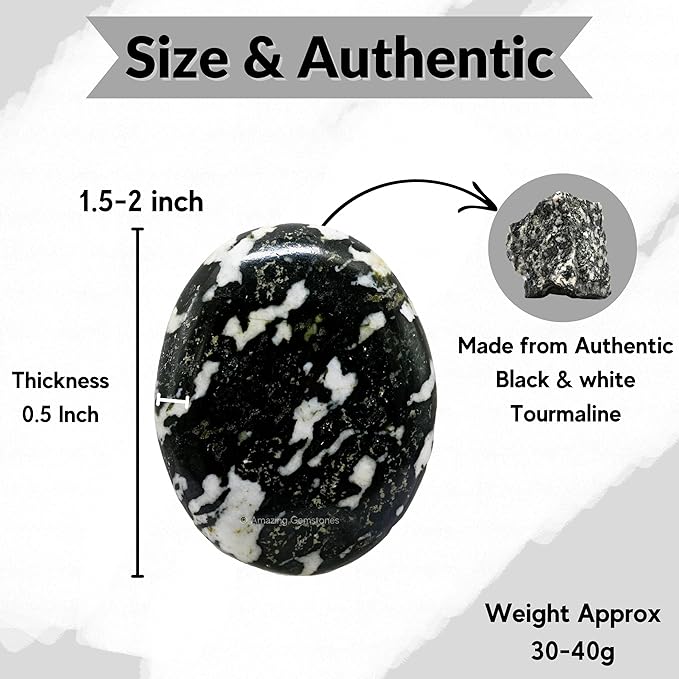 - Large Black and White Tourmaline Palm Stone : Our black and white tourmaline palm stone is large that perfectly fits in your palm and perfect for those who appreciate crystals and healing stones. This authentic black and white tourmaline stone is ideal for reiki supplies and other spiritual practices, making it a thoughtful birthday gifts for men and women.