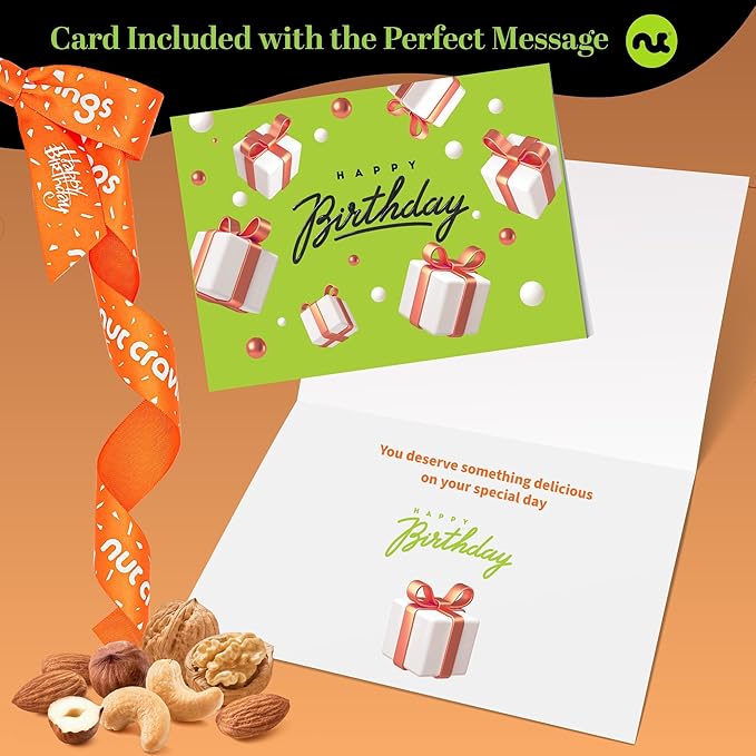 - A SELECTION OF 12 OF OUR BEST NUTS: Our HAPPY BIRTHDAY Nuts Wooden Tray includes a handful of 12 of our signature nuts: Roasted Salted Brazil Nuts, Roasted Salted Almonds, Salted Pistachios, Roasted Salted Peanuts, Roasted Salted Cashews, Honey Glazed Pecans, Raw Hazelnuts, Walnuts, Roasted Salted Macadamia Nuts, Mixed Nuts, Crunchy Corn Kernels, and Bar Mix.