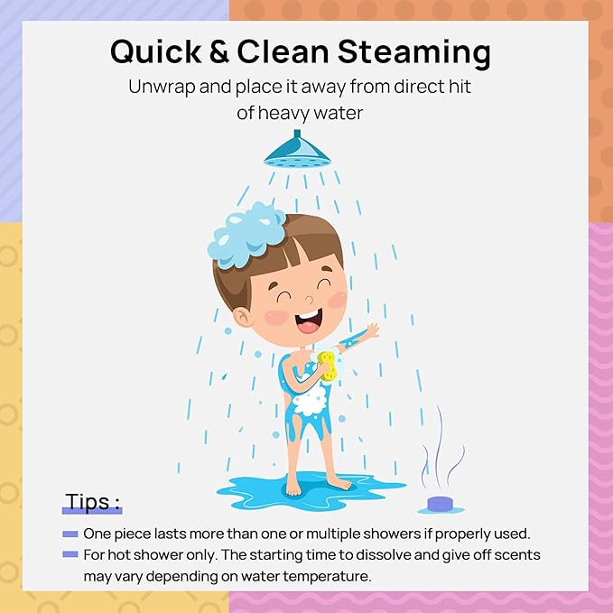 - Easy to use: Our shower steamers come individually wrapped and labeled in an elegant box, making them ideal for gifting. They’re safe and easy to use—simply pop one next to your shower stream, out of direct contact with the water. They leave no residue behind and won't clog drains or septic systems.
