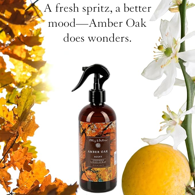 - Amber Oak linen spray by Abbey & Sullivan has a robust woody aroma with subtle floral notes. It has a deep amber scent at first, but rose and jasmine perfumes develop as time goes on, giving it the perfect balance of strength and gentleness.