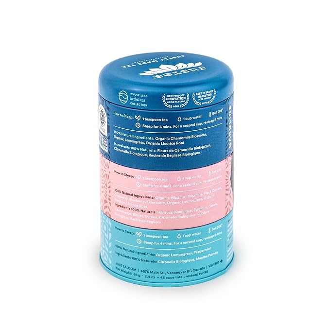 JusTea Herbal Tea Trio | Stacking Tins Variety Pack with Hand Carved Tea Spoon | Loose Leaf | Caffeine Free | Award-Winning | Fair Trade | Non-GMO