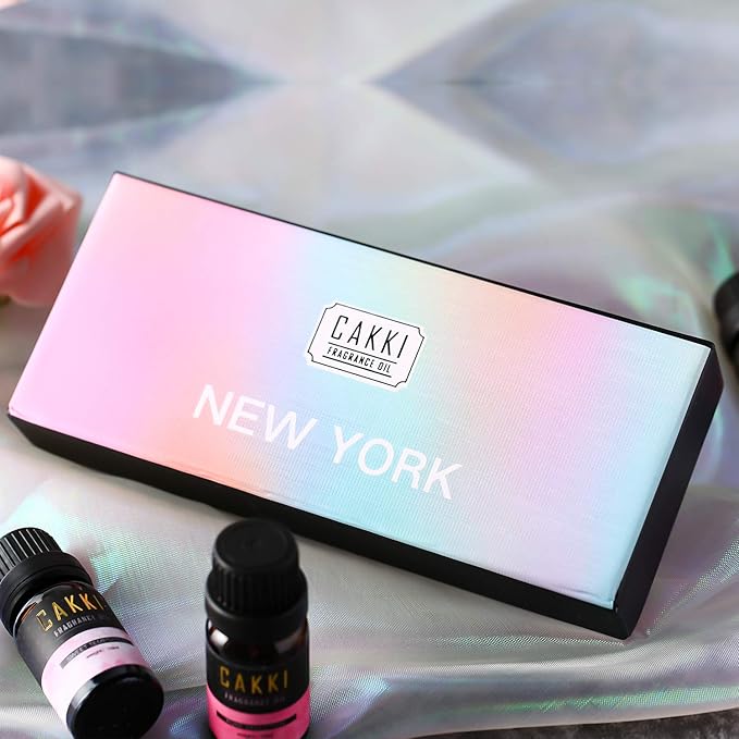 - Start the Magnificent Scents Journey with Cakki Fragrance Oil Collections You receive Cakki New York Collection 10ml x 6 fragrance oils in 100% leak-proof amber glass bottles, with precisely-controlled droppers. These fragrance oils include Pure Seduction, Love Spell,Coconut Passion,Sweet Temptation,Aqua Kiss,Romantic Wish. Our exquisite fragrance oil gift sets are packed in a bright and elegant gift box, and they are exclusive gifts for all occasions.