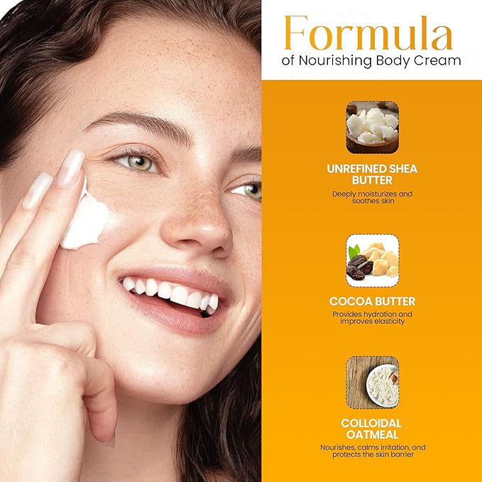Shea Radiance Nourishing Body Cream with Colloidal Oatmeal | Hydrating Moisturizer for Sensitive Skin | Gentle Hydration with Long Lasting Moisture | Citrus Blossom 8 oz