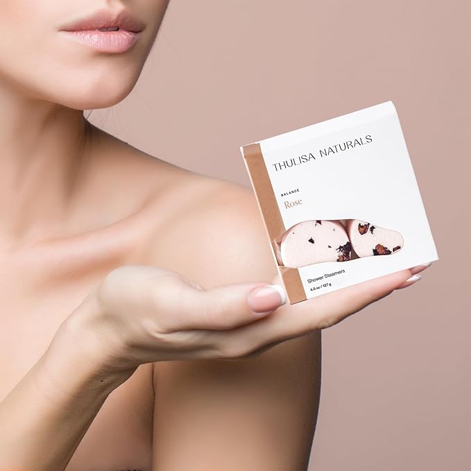 Thulisa Naturals Rose Shower Steamers Aromatherapy | Organic Shower Bombs with Essential Oils | Self Care Christmas Birthday & Spa Gifts for Women & Men | Stocking Stuffers | 4 Pack