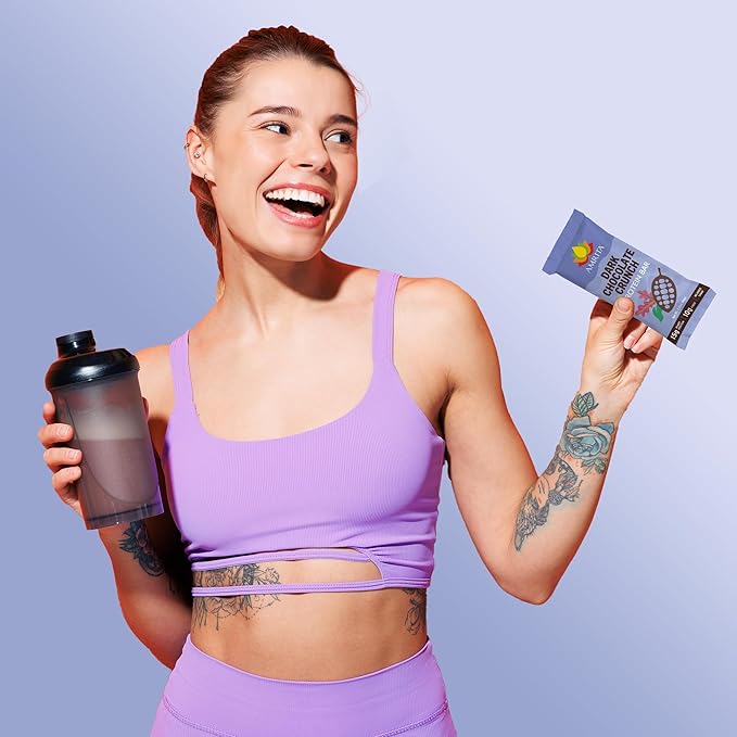 - Low-Sugar Protein Bar for a Chocolate Bliss - Indulge in irresistible flavors vegan dark chocolate and ancient grain puffed quinoa. Each box contains 12 flavor-packed protein bars for your guilt-free enjoyment. These low-sugar, high-protein bars are a perfect healthy snack!